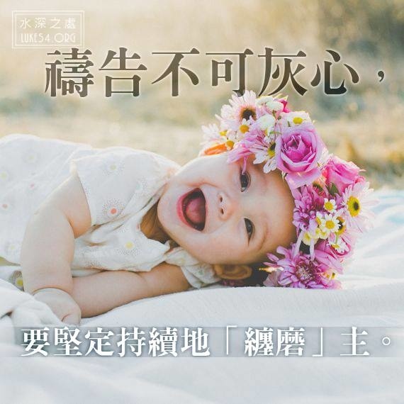 我們的禱告或許上帝馬上垂聽,或許祂讓我們安靜等候,甚至最後我們的改變心意。讓我們「常常禱告,不要灰心」,因為上帝的愛總不離開我們,祂的應許也永不落空。